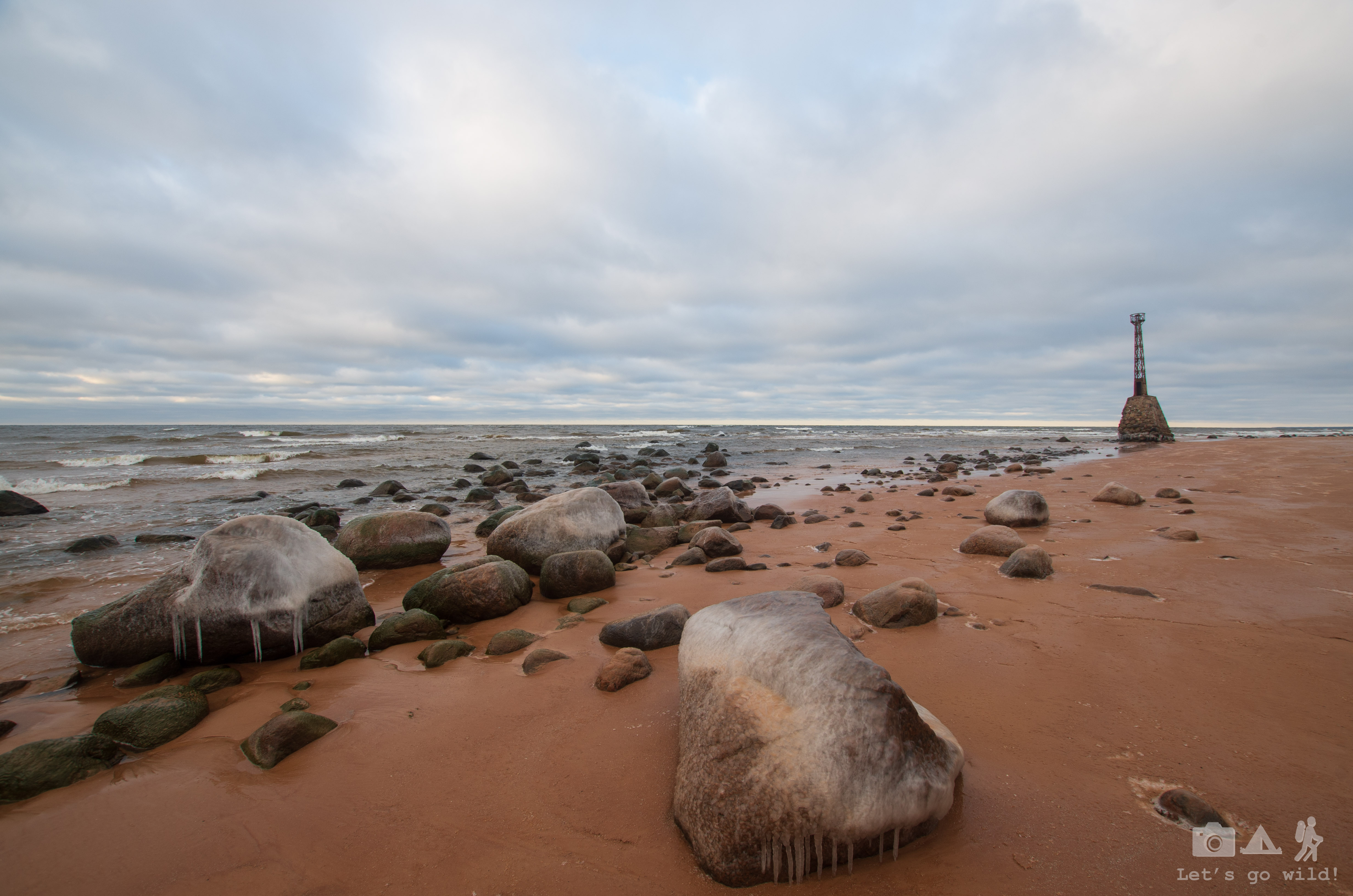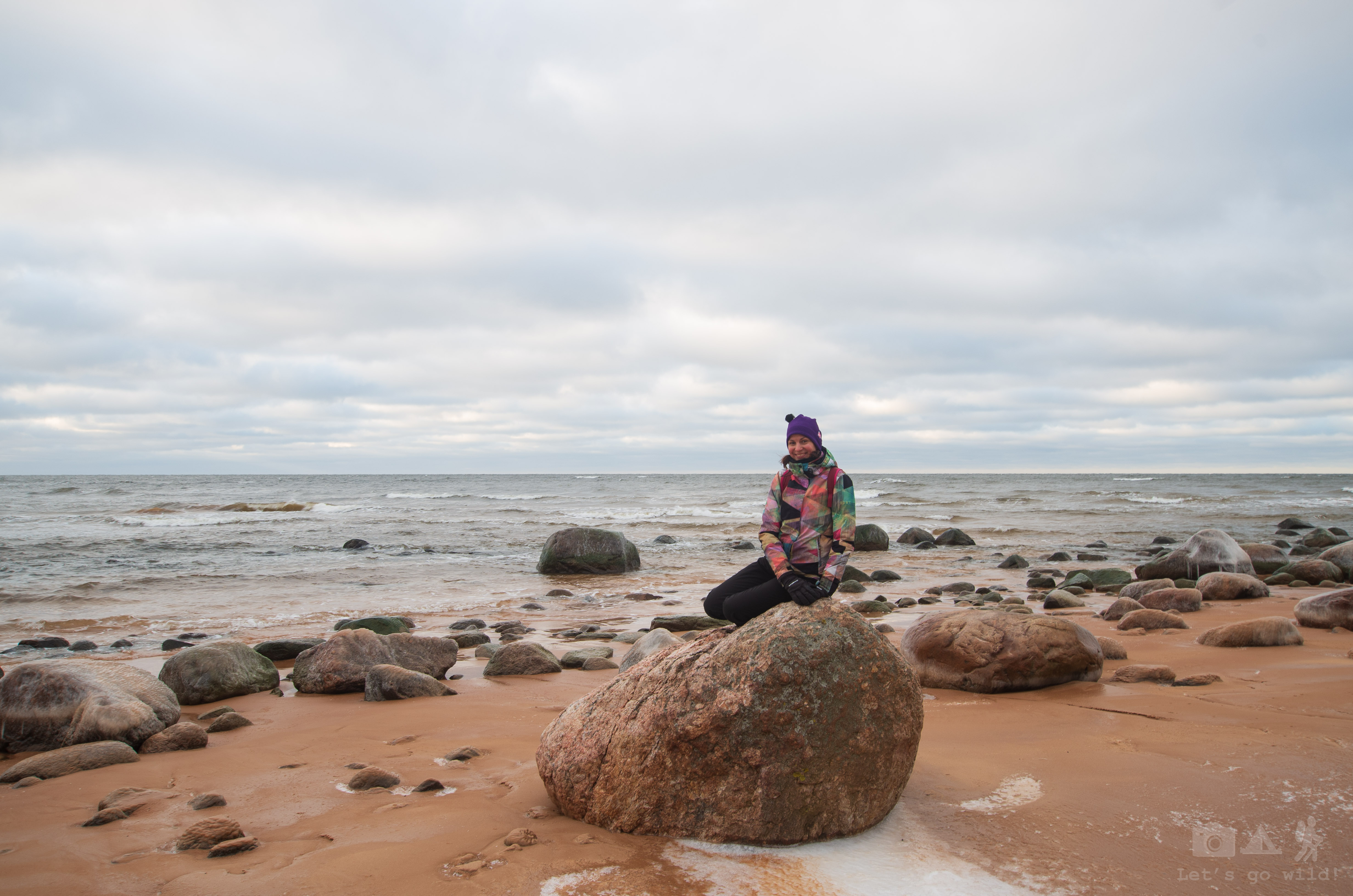It was a cold but very beautiful hike. The Baltic sea is usually quite calm and has golden sand beaches all over. Yet this part of it was mixed with some big stones (thus even named a rocky beach). We hiked 11 km in the shore, stopping by for some photos and a quick snack lunch. We wanted to hike even more but were forced to turn around when we came across the river that we couldn’t pass without getting wet. Probably not very wise to get wet at these temperatures…