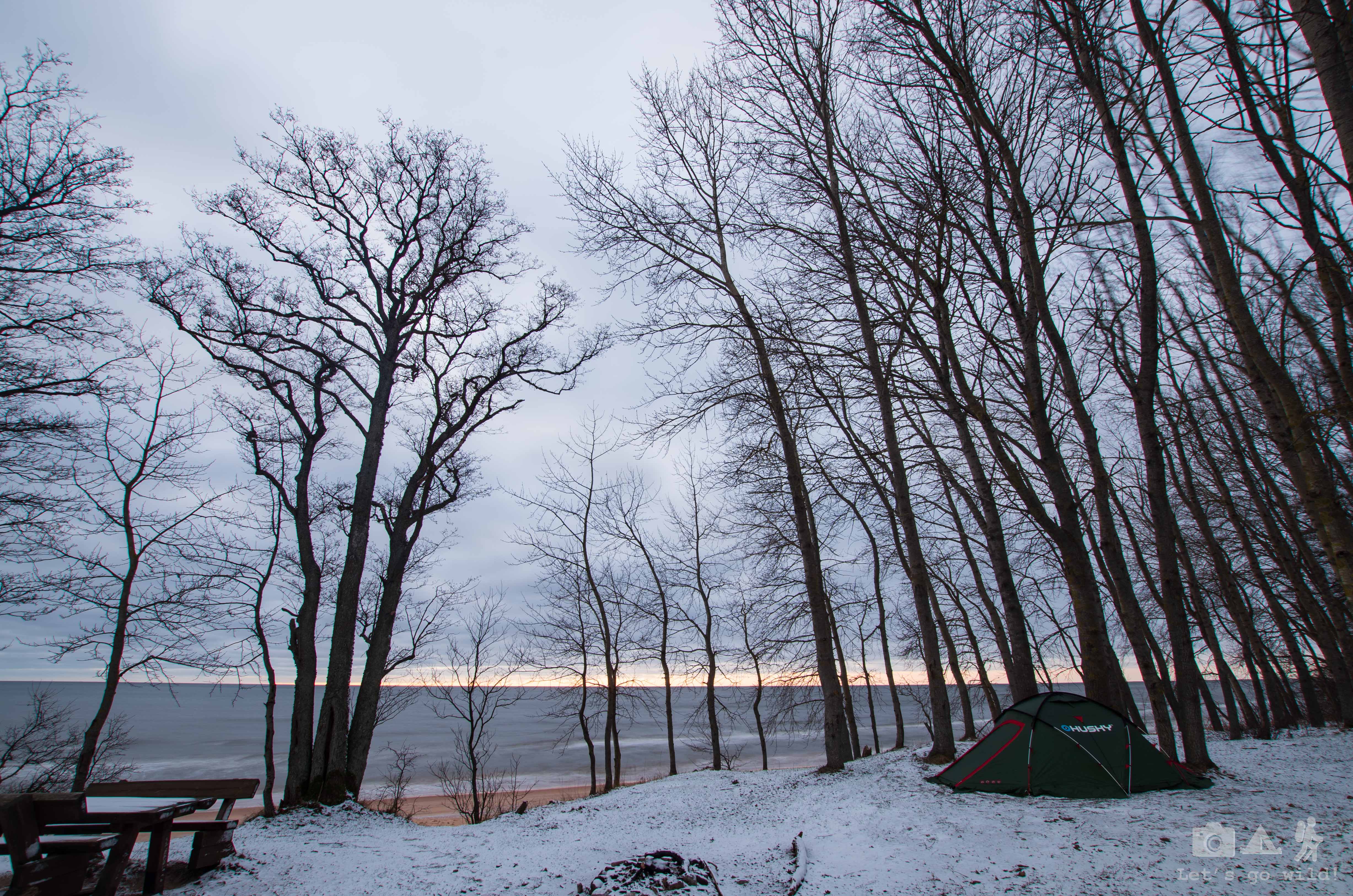 The distances were not very long, but winter roads forced us to go slower and spend around 4 hours driving. Even though I have visited Latvia before, I didn’t know many places around so we used mammadaba website to look for possible places to put a tent. Latvia, as well as Estonia, is friendly for nature lovers and campers. Even though you can’t put a tent anywhere you want like in Scandinavian countries, it has a lot of official wild camping places to offer. They are taken care of by LVM in Latvia and RMK in Estonia, and usually have a simple table with a bench, a fireplace and some space to drop a tent. That’s more than we need!