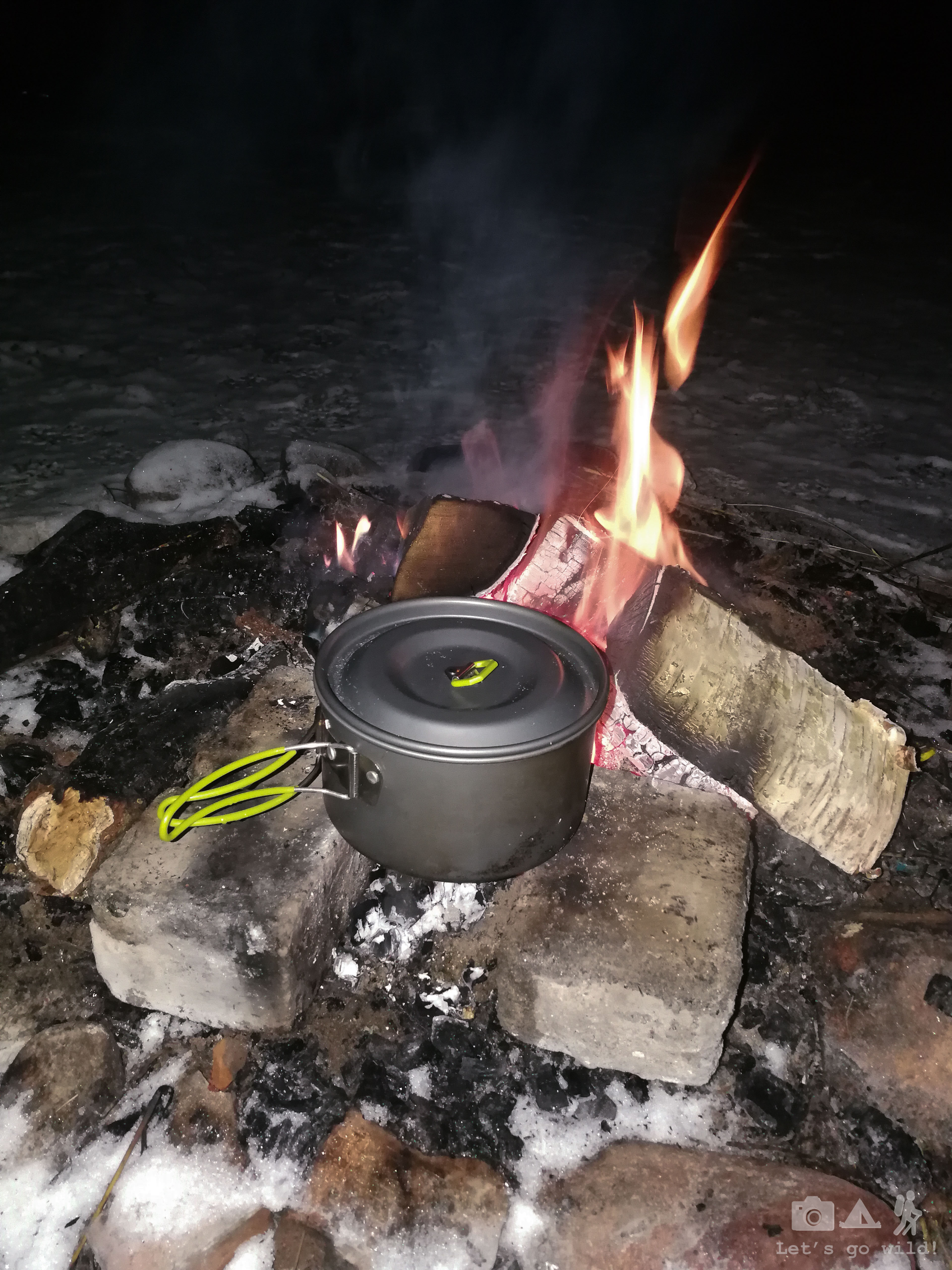The evening hike was equally nice and easy (although very dark). A 7 km walk kept us warm and made us starve again. The second evening we didn’t even try to cook our dinner with gas. On the contrary, we adapted the fireplace to our not very suitable pots and cooked pasta with canned meat again. Nothing tastes better in the wildness!