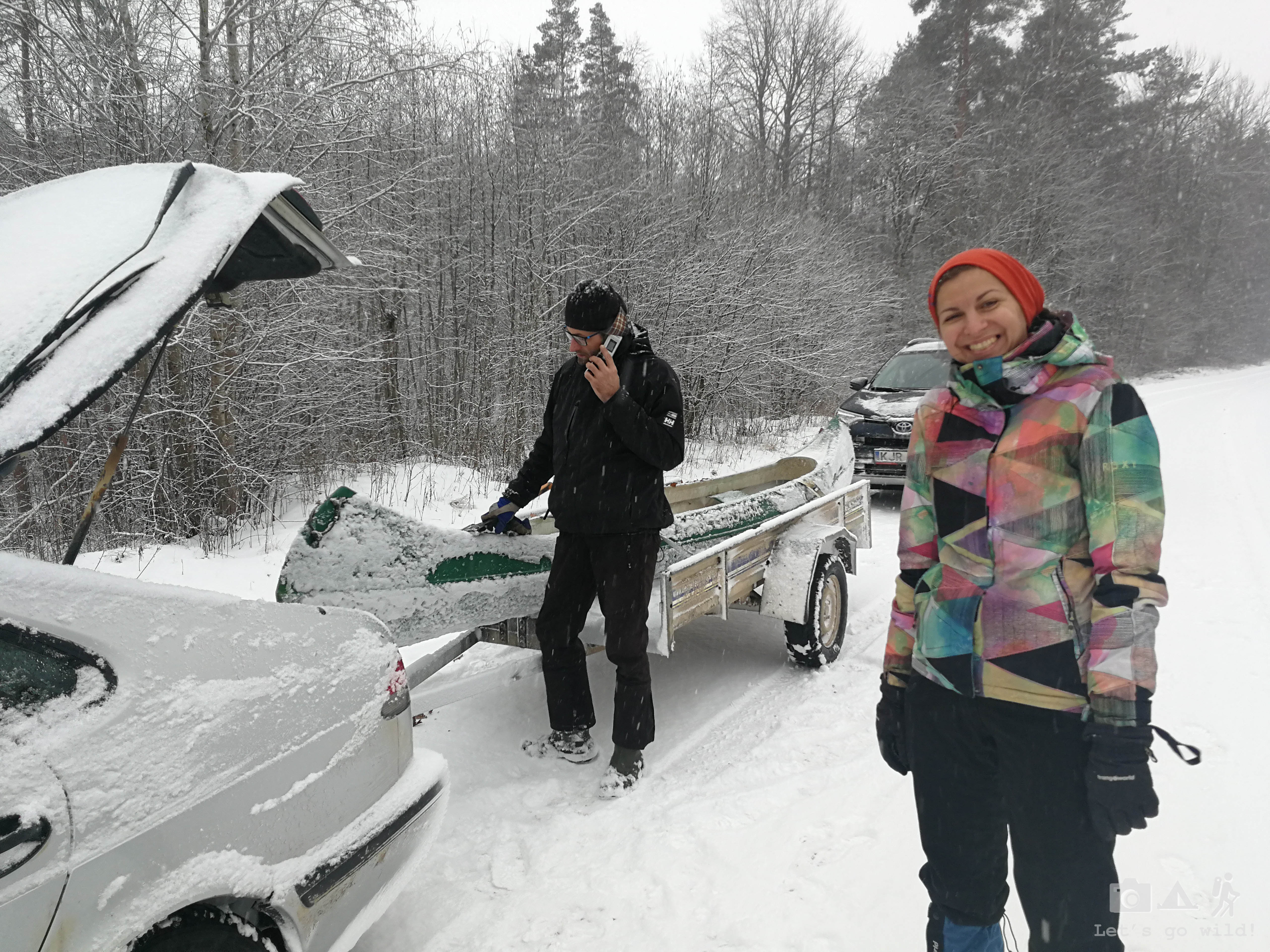 We had a good laugh that kept our spirit high when we saw his car loaded with a canoe at this weather!!! And yes, it was meant for us!!! Just in case the river is not frozen enough (and the first river we saw in Estonia was definitely not!). You see, the fastest way to get to the path, that leads to the sauna is by crossing a fairly wide and deep river. The only bridge that crosses it in a civilized way is private and closed. Thus, you have to use your imagination to get there!