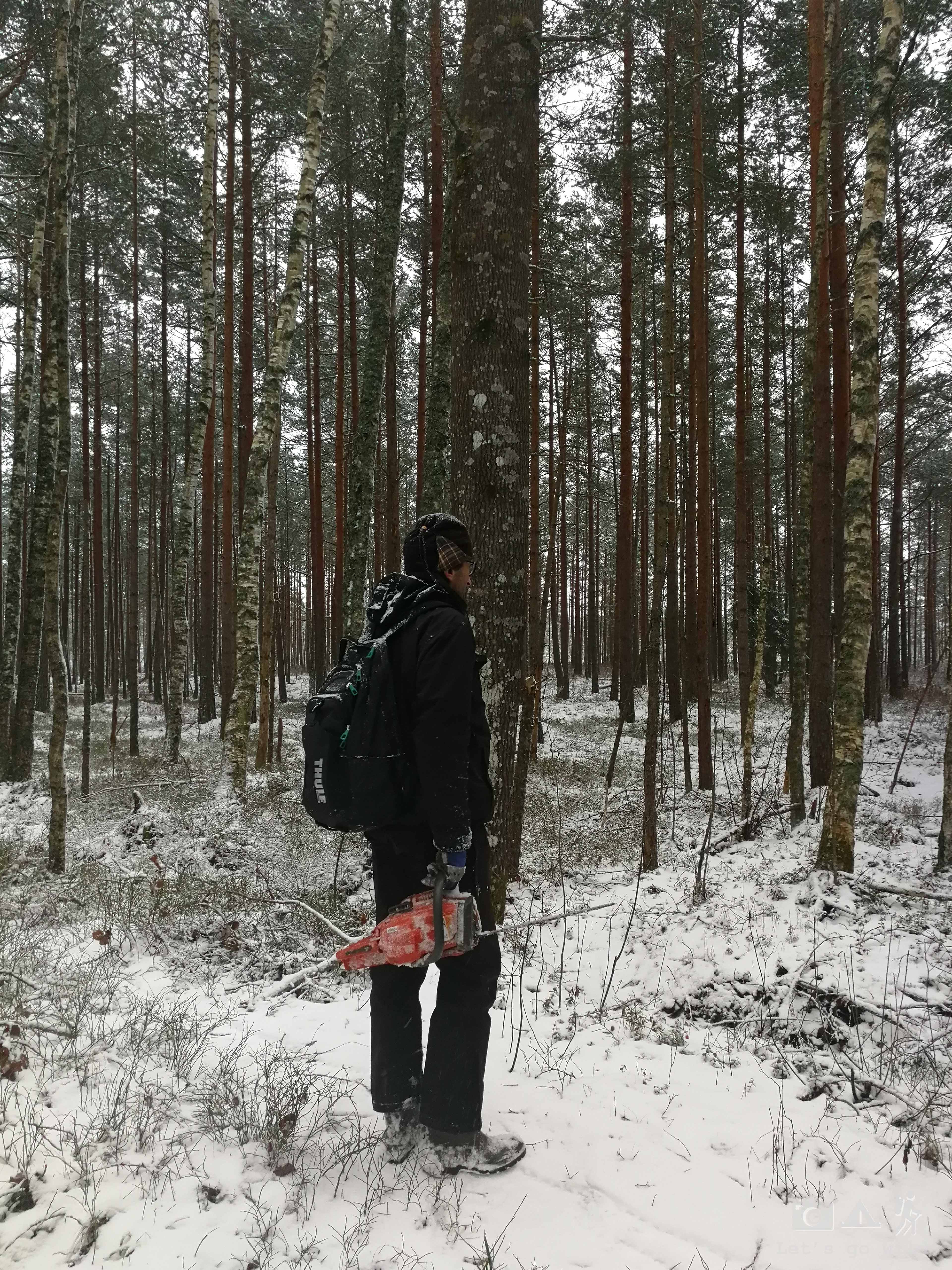 After crossing the river we had to walk through the forest surrounded by the bog for a bit more than 2 km, carrying all our stuff. While we were carrying our backpacks, Algis was carrying an electric saw. It would have been a creepy experience if I didn’t know the guy!!! 😀