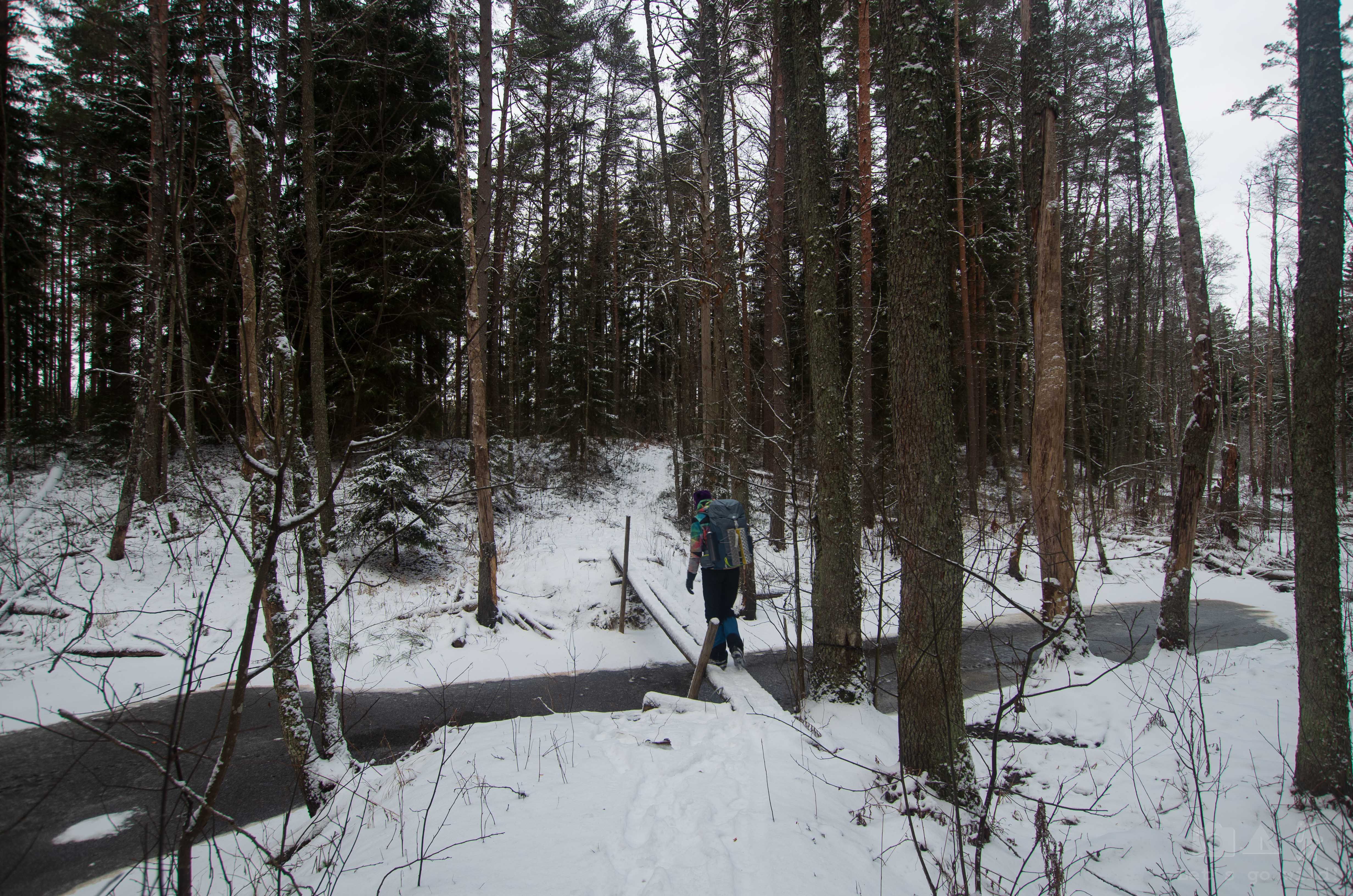 The path was unmarked, but quite straight as some 50 years ago it used to be a tiny local road. Some parts of it were more thrilling with improvised bridges for rivers to cross. In general – it was an absolutely beautiful walk in a winter saga.
