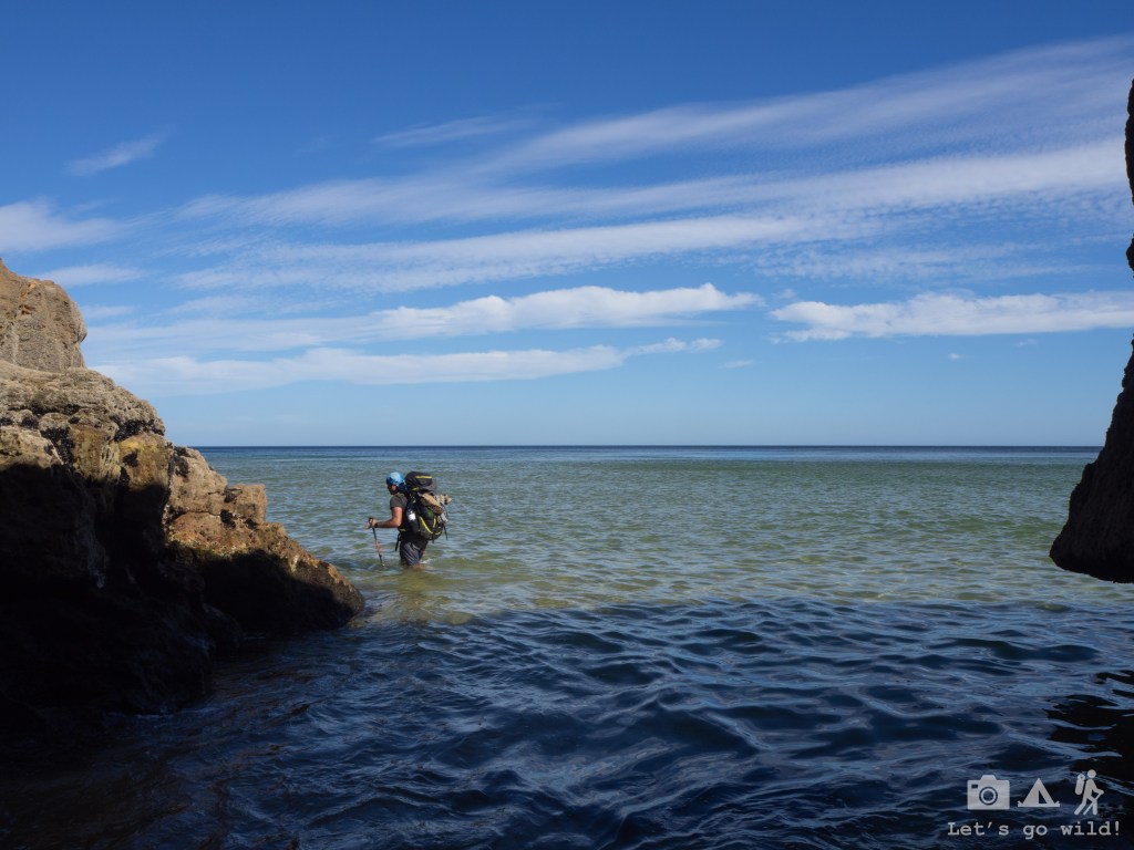 Thus, after spending around two hours in the beach we put our backpacks back on, ready to get wet. Walking with our big backpacks in the water reaching the but wasn’t easy, especially trying to calculate the coming waves and avoiding the underwater rocks. I ended up with quite a few bloody scratches in my feet, but the adrenaline took away the pain.