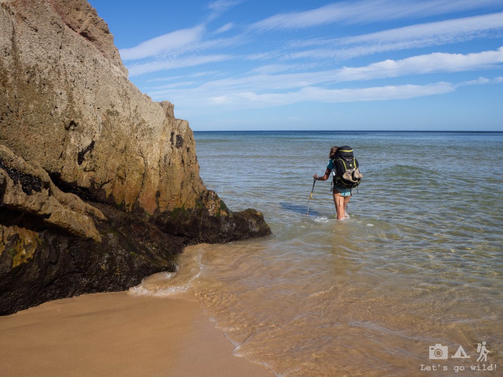 The camping of Aljezur was actually few kilometers before the village. We reached it early in the day and had a lazy afternoon, planning the rest of the hike. We’ve decided to divert a bit from the official route and to cut some corners as we didn’t have a particular interest in crossing all the villages. To do so, we had to divert to the Amoreira beach in Aljezur which also had a river to cross. This time we’d studied the schedule of tides in advance to know the best timing for crossing it. Besides, up to Sagres there were no more campings, thus we would need to find a place to stay on the go and know the possible places to refill our water supplies, which is not that easy on this trail.