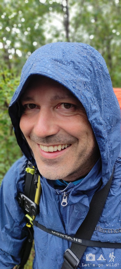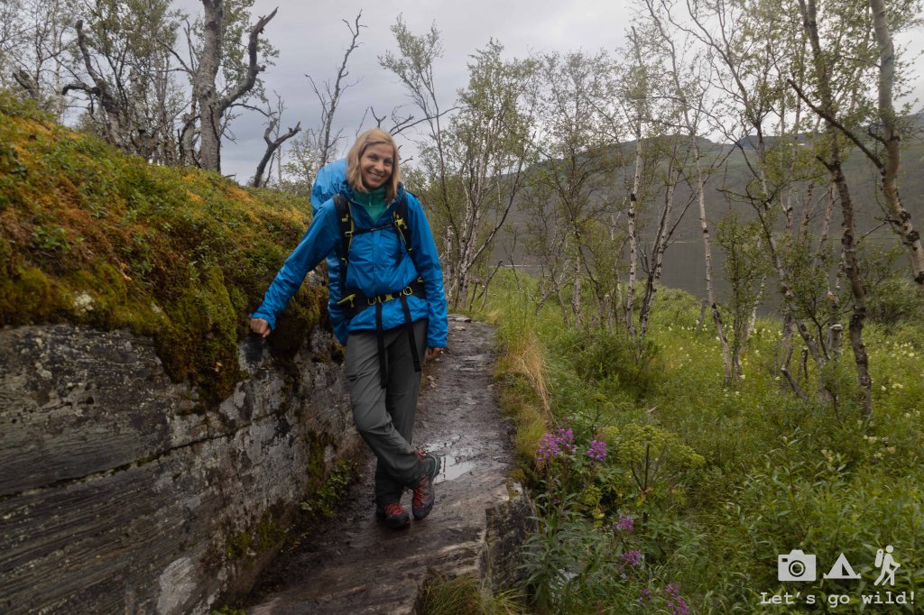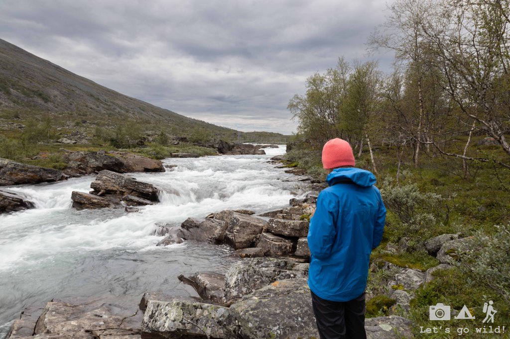 Despite the rain, the hike was quite pleasant and beautiful. The trail started in the forest following a path by a river with some nice spots to stop and admire the wilderness. Very soon you realize how far away from the civilization you are: no sounds of cars, airplanes, factories or even your mobile phone. Yes, there is no mobile coverage whatsoever just a couple km into the trail. And there won’t be any until almost Vakkotavare several days ahead.