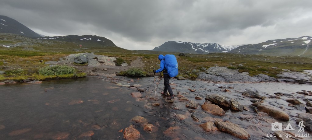 The trail wasn’t difficult in general. Kungsleden is not a difficult hike per se. We had to cross some rivers but never really had to remove the shoes – simply jumping from rock to rock was enough to keep our feet relatively dry. What made the hike difficult was the weather. Walking against the strong wind makes you waste much more energy than you would imagine. And if you get rain on top of that… lovely.