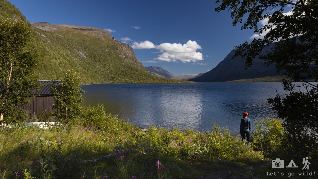 The last kilometers of the day took us through a more mountainous area, with some easy climb and forest walk before opening up the views to the gorgeous lake right next to Kaitumjaure.