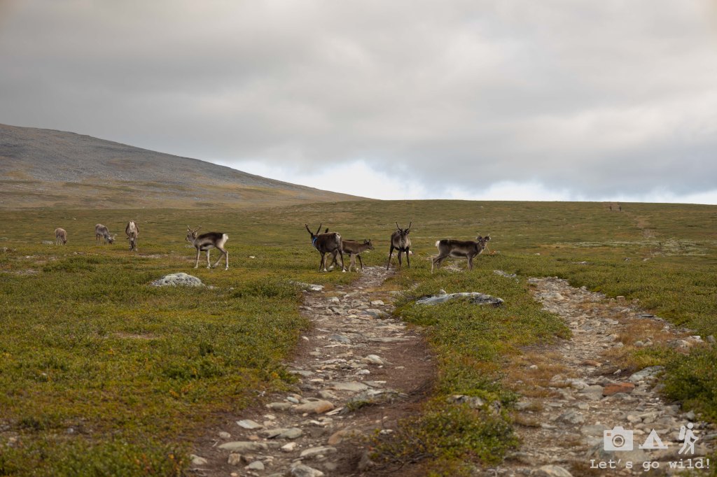 As we continued our climb which was now less steep, a huge herd of reindeers was showing us the way. Spectacular! They were keeping a safe distance from us yet staying close enough to admire them and accompanied us during at least an hour before diverting deeper into the fields.