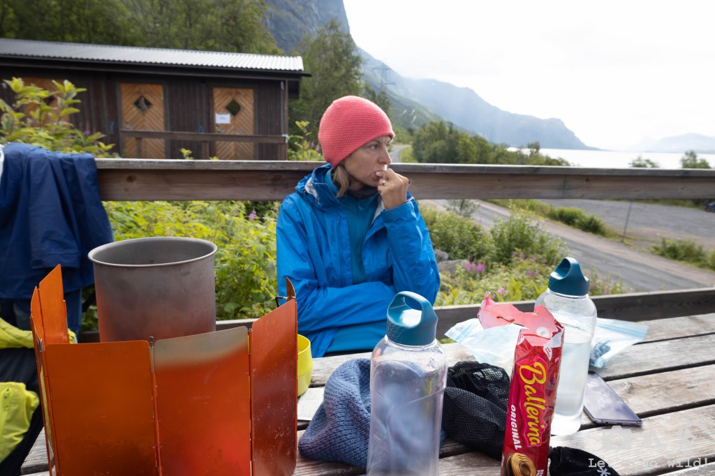 Getting spoiled by the hut services, we cooked our dinner inside as well. To be honest, it really felt good to be dry and warm before going to sleep after such a cold day. Besides we filled our bellies with the best adventure food we had in a long time: Beef stroganoff from Peak Refuel. It was a first time we tried this brand and we honestly were very much impressed.
